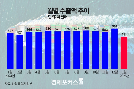 한국의 수출은 지난 2023년 10월 증가율이 전년 동월 대비 플러스로 전환했다. 이후 작년 12월까지 15개월 연속 플러스 기록을 이어왔지만, 1월에 그 흐름이 멈추게 된 것이다.