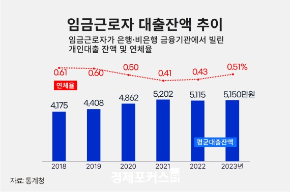 2023년 임금근로자의 평균 대출잔액과 연체율이 전년 대비 증가한 것으로 나타났다. 특히 대기업과 중소기업 근로자 간의 대출 규모와 연체율 격차가 여전히 큰 것으로 조사됐다.