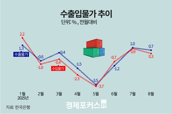 한국은행이 16일 발표한 ‘2025년 8월 수출입물가지수’에 따르면 8월 수입물가는 135.21(2020=100)로 전월(134.84)보다 0.3% 상승했다. 올해 2월부터 5개월 연속 하락하다 7월(0.8%) 반등한 데 이어 두 달째 상승세다. 다만 계약통화 기준 수입물가는 전월 대비 0.6% 하락했다.