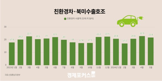 ÀÚµ¿Â÷ ¼öÃâ È£Á¶´Â ÇÏÀ̺긮µå Â÷·® µî ģȯ°æÂ÷ÀÇ ³ôÀº ¼ºÀå¼¼¿¡ ÈûÀÔÀº °ÍÀ¸·Î ºÐ¼®µÈ´Ù. 5¿ù ģȯ°æÂ÷ ¼öÃâÀº 21¾ï8000¸¸ ´Þ·¯·Î Àü³â µ¿¿ù ´ëºñ 3.7% Áõ°¡ÇßÀ¸¸ç, 3°³¿ù° 20¾ï ´Þ·¯¸¦ ¿ôµµ´Â µî ¼ºÀå¼¼¸¦ À̾°í ÀÖ´Ù. ƯÈ÷ ÇÏÀ̺긮µåÂ÷ ¼öÃâÀº 10¾ï3000¸¸ ´Þ·¯·Î 48.2%³ª ±ÞÁõÇß´Ù.