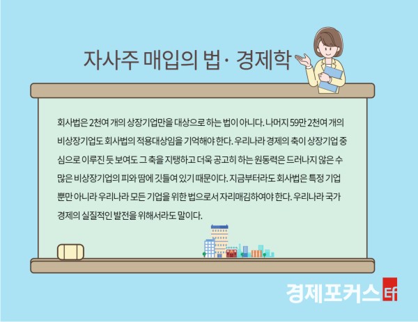 ȸ»ç¹ýÀº ±â¾÷ÀÇ »ýȰ°ü°è¸¦ ±ÔÀ²ÇÏ´Â ¹ýÀÌ´Ù. ±×·¯³ª µ¿½Ã¿¡ ȸ»ç¹ýÀº ±â¾÷ÀÇ »ýȰ°ü°è¸¦ ÃËÁøÇÏ´Â ¹ýÀ̱⵵ ÇÏ´Ù. ƯÈ÷ 2011³â °³Á¤À¸·Î ÀÌÁ¦´Â ȸ»ç¹ýµµ ÀÚ»çÁÖ ¸ÅÀÔ¿¡ °üÇÑ ±¸ Áõ±Ç°Å·¡¹ýÀÇ ÀÔÀåÀ» ¼ö¿ëÇÑ ¸¸Å­ ±â¾÷ÀÇ »ýȰ°ü°è¸¦ ´õ¿í Àß »ìÇÊ Çʿ䰡 ÀÖ´Ù. ÀÚ»çÁÖ ¸ÅÀÔÀÇ Çã¿ëÀÌ ÀÚÀ¯·Î¿î Áֽİŷ¡¸¦ ÅëÇØ ÁֽĽÃÀåÀÇ È¿À²¼ºÀ» ³ôÀ̰í Àû´ëÀû M&A¿¡ ´ëÇÑ ¹æ¾î¼ö´ÜÀ¸·Î¼­ °æ¿µ±Ç ¾ÈÁ¤À» µµ¸ðÇÑ´Ù´Â ÀÔÀå¿¡¼­ ¸»ÀÌ´Ù. ±×·±µ¥ ¾ÆÁ÷µµ ´ëºÎºÐÀÇ ºñ»óÀå±â¾÷Àº ȸ»ç¹ýÀÇ º¯È­µÈ ¸ð½ÀÀ» Àß ¸ð¸£´Â °æ¿ì°¡ ¸¹´Ù. ȸ»ç¹ýÀÇ ÁÖ¿ä °ü½É´ë»óÀÌ ºñ»óÀå±â¾÷º¸´Ù´Â »óÀå±â¾÷¿¡ Ä¡ÁßµÈ ÀÌÀ¯ÀÌ´Ù.