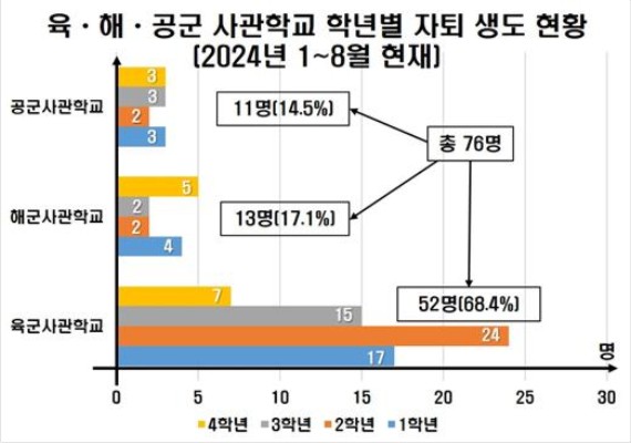 ƯÈ÷ ¿ÃÇØ 1¿ùºÎÅÍ 8¿ù ÇöÀç±îÁö ÀÚÅðÇÑ °¢ ±º »ç°üÇб³ »ýµµÀÇ ¼ýÀÚ´Â 76¸íÀÌ´Ù.
