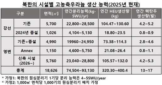 ÃßÁ¤ ¼öÄ¡¸¦ Á¦½ÃÇÑ ±Ù°Å·Î´Â ¡â2023³â 12¿ù 26ÀÏ ±èÁ¤ÀºÀÌ ³ëµ¿´ç Áß¾ÓÀ§ Á¦8±â 9Â÷ Àü¿øÈ¸ÀÇ¿¡¼ ¹ßÇ¥ÇÑ ‘±¹¹æ·Â ¹ßÀü 5°³³â °èȹ’¿¡¼ ÇÙźµÎÀÇ ¼ö¸¦ ±âÇϱ޼öÀûÀ¸·Î ´Ã¸®µµ·Ï ÁÖ¹®Çß´Ù´Â Á¡, ¡âÁö³ 8¿ù ±¹Á¦¿øÀÚ·Â ±â±¸(IAEA) º¸°í¼ÀÇ “ºÏÇÑ ¿µº¯¿¡ ¿ì¶ó´½ ³óÃà ½Ã¼³(ÃßÁ¤)ÀÇ ½Å¼³·Î ¿ì¶ó´½ ³óÃà Ȱµ¿ÀÌ È®´ëµÉ °¡´É¼ºÀÌ ÀÖ´Ù”°í °Á¶ÇÑ Á¡, ¡â¿µº¯·°¼± ½Ã¼³ÀÇ ¿¬°£ ÃÖ´ë ÇÙźµÎ ÃßÁ¤ »ý»ê·®ÀÌ ±âÁ¸ÀÇ 10¹ß ¹Ì¸¸¿¡¼ 17¹ß·Î ´Ã¾î³µ´Ù´Â Á¡À» µé°í ÀÖ´Ù.