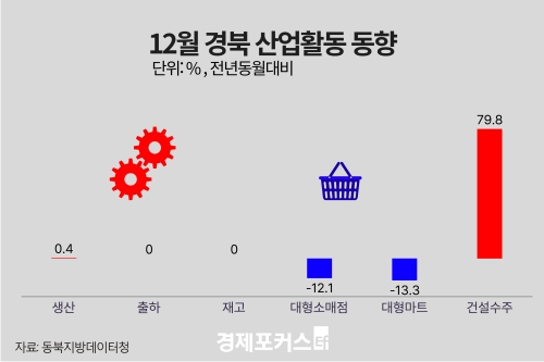 Áö³ÇØ 12¿ù ´ë±¸·°æºÏÀÇ »ê¾÷Ȱµ¿Àº ±¤°ø¾÷ »ý»êÀÌ µÎ Áö¿ª ¸ðµÎ Áõ°¡ÇÑ °¡¿îµ¥ ¼Òºñ´Â °¨¼ÒÇß°í, °Ç¼³¼öÁÖ´Â È®´ëµÇ¸ç È¥Á¶¼¼¸¦ º¸¿´´Ù.