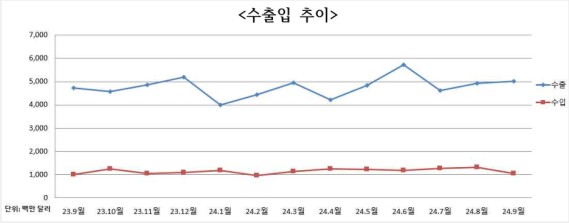 õ¾È¼¼°ü¿¡ µû¸£¸é Áö³ 9¿ù õ¾È・¾Æ»ê·¿¹»ê µî Ãæ³² ºÏºÎÁö¿ª ¼öÃâÀº 50¾ï´Þ·¯, ¼öÀÔ 10¾ï´Þ·¯·Î Áö³ÇØ 9¿ùº¸´Ù ¼öÃâÀº 6.2% Áõ°¡ ¼öÀÔÀº 4.9% Áõ°¡ÇßÀ¸¸ç ¹«¿ª¼öÁö´Â Àü³â µ¿¿ù ´ëºñ 6.5% Áõ°¡ÇÑ 39¾ï 7100¸¸´Þ·¯ÀÇ ÈæÀÚ¸¦ ±â·ÏÇß´Ù.