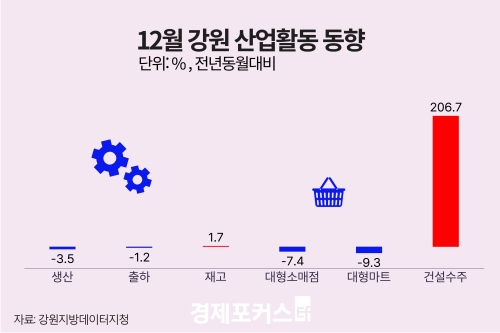 12¿ù °­¿ø ±¤°ø¾÷ »ý»ê 3.5%¡é¡¦ ´ëÇü¼Ò¸ÅÁ¡ 7.4%¡é¡¤°Ç¼³¼öÁÖ 206.7%¡è