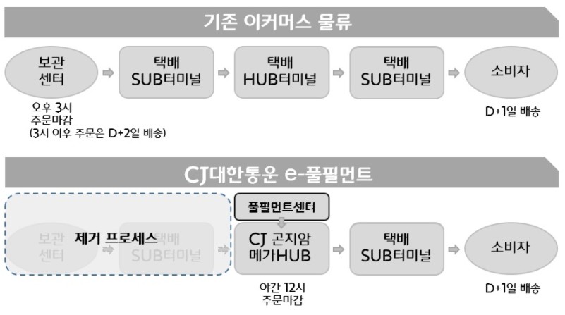 Çõ½ÅÀÇ ÁÖ¿ä ³»¿ëÀº ÆÇ¸ÅÁ¡À¸·Î ¹è¼ÛµÇ´ø °ÍÀ» Ç®ÇÊ¸ÕÆ® ¼¾ÅÍ·Î º¸³»´Â °ÍÀ̰í, ÆÇ¸ÅÁ¡ÀÌ ¾Æ´Ñ ¼¾ÅÍ¿¡¼­ ¹°·ùÀÇ Á¦¹Ý ¾÷¹«¸¦ ó¸®ÇÏ°í ¹è¼ÛÀ» Çϸ鼭 ÁýÇÏ¿Í ¼­ºêÅ͹̳ÎÀÇ °úÁ¤ÀÌ »ý·«µÇ¸é¼­ ¹°µ¿·®À» ´Ã¸®°í ¹è¼Û½Ã°£À» ´ÜÃàÇÏ´Â È¿°ú¸¦ º¸°í ÀÖ´Â °ÍÀÌ´Ù. ½ÇÁö·Î ÁÖ¹®Çغ¸¾Ò´õ´Ï ÀÚÁ¤¿¡ ÁÖ¹®ÇÑ ¾ÆÁÖ ¼Ò¼ÒÇÑ ¹°Ç°ÀÌ 13½Ã°£ Áö³ª ¹è¼ÛµÇ¾ú´Ù. ÇöÀç ¾Æ¸¶Á¸, ÄíÆÎ, CJ´ëÇÑÅë¿î, DHL, Fedex µîÀÌ °Å´ëÇÑ ¹°·ù¼¾Å͸¦ Áß½ÉÀ¸·Î Ç®ÇÊ¸ÕÆ®¸¦ Àü°³Çϰí ÀÖ´Ù.