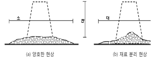 ÁÖ¾îÁø Àç·á ¹× ¹èÇÕ¿¡ µû¶ó ¿¬±¸¸¦ ÁøÇàÇÏ¿´´Âµ¥, µ¿ÇØ ½ÇÇ迬±¸°¡ ¸ÞÀÎÀÌ´Ù º¸´Ï À¯µ¿¼ºÀÇ °æ¿ì´Â ÁÖ¾îÁø °ªÀÎ ½½·³ÇÁ Ç÷Π600 ± 100 mm¿¡ °ø±â·® 4.5 ± 1.5 %¿¡ ¸ÂÃß´Â Á¤µµÀ̰í, ±× ÀÌÀüºÎÅÍ ½Ç½ÃÇÏ´ø ½½·³ÇÁ ½ÃÇèÀº ÇÏÁö ¾Ê´Â °ÍÀ̾ú´Ù. ¹°·Ð Àç·áºÐ¸® Á¤µµ´Â À°¾ÈÀ¸·Î Áß¾Ó¿¡ ±½Àº°ñÀç°¡ ¸ðÀ̰ųª, °¡ÀåÀÚ¸®¿¡ ½Ã¸àÆ® ÆäÀ̽ºÆ®ÀÇ À¯ÃâÀÌ ¾øµµ·Ï ÇÏ´Â °ÍÀÌ ÀüºÎ¿´´Ù. ±×·¸Áö¸¸ À°¾È °üÂû·Î Àç·áºÐ¸®¸¦ Æò°¡ÇÑ´Ù´Â °ÍÀº Àü¹®°¡¶ó¸é ±×·±´ë·Î ¾Ë ¼ö ÀÖ°ÚÁö¸¸ ¾î´À Á¤µµÀÇ Á¡¼ºÀ¸·Î Àç·áºÐ¸® ÀúÇ×¼ºÀ» °®°í ÀÖ´ÂÁö Á¤·®È­µÈ ¼ýÀڷΠǥ±âÇϱâ´Â ºÒ°¡´ÉÇÑ °ÍÀ̾ú´Ù.