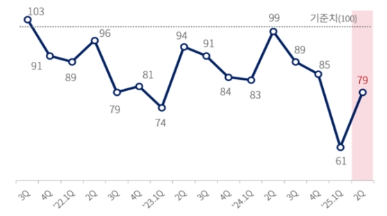24ÀÏ ´ëÇÑ»ó°øÈ¸ÀǼÒ(´ëÇÑ»óÀÇ)°¡ Àü±¹ Á¦Á¶¾÷ü 2113°÷À» ´ë»óÀ¸·Î Á¶»çÇÑ ±â¾÷°æ±âÀü¸ÁÁö¼ö(BSI)¿¡ µû¸£¸é, 2024³â 2ºÐ±â BSI´Â 79·Î Áý°èµÆ´Ù. ÀÌ´Â ÀüºÐ±â(61)º¸´Ù 18Æ÷ÀÎÆ® »ó½ÂÇßÀ¸³ª, ¿©ÀüÈ÷ ±âÁØÄ¡(100)¸¦ Å©°Ô ¹Øµ¹°í ÀÖ¾î ºÎÁ¤ÀûÀÎ °æ±â Àü¸ÁÀÌ Áö¼ÓµÇ°í ÀÖÀ½À» ÀǹÌÇÑ´Ù. 2021³â 4ºÐ±â(91) ÀÌÈÄ 15ºÐ±â ¿¬¼ÓÀ¸·Î 100 ÀÌÇϸ¦ ±â·Ï ÁßÀÌ´Ù.
