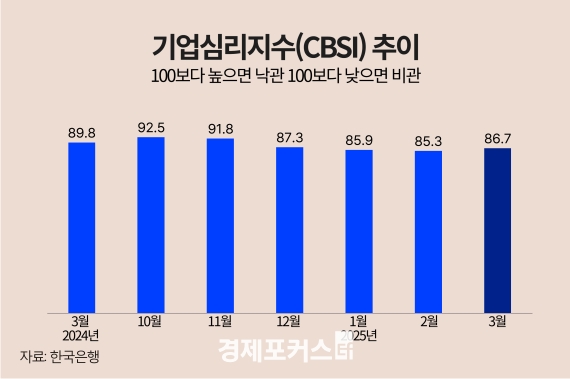 26ÀÏ Çѱ¹ÀºÇàÀÌ ¹ßÇ¥ÇÑ '3¿ù ±â¾÷°æ±âÁ¶»ç'¿¡ µû¸£¸é, ÀÌ´Þ Àü»ê¾÷ ±â¾÷½É¸®Áö¼ö(CBSI)´Â Àü¿ù ´ëºñ 1.4Æ÷ÀÎÆ®(p) »ó½ÂÇÑ 86.7À» ±â·ÏÇß´Ù. ÀÌ´Â Áö³ÇØ 11¿ùºÎÅÍ À̾îÁø 4°³¿ù ¿¬¼Ó Ç϶ô¼¼¸¦ ¸ØÃß°í óÀ½À¸·Î ¹ÝµîÇÑ ¼öÄ¡´Ù.