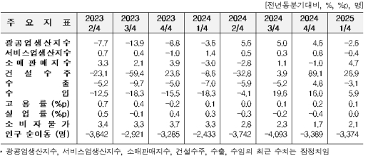 Åë°èûÀÌ 13ÀÏ ¹ßÇ¥ÇÑ ‘2025³â 1ºÐ±â Áö¿ª°æÁ¦µ¿Çâ’¿¡ µû¸£¸é ºÎ»êÀÇ ±¤°ø¾÷ »ý»êÀº Àü³â °°Àº ºÐ±âº¸´Ù 2.6% ÁÙ¾ú´Ù. ½Ä·áǰ(17.9%), ÀÚµ¿Â÷·Æ®·¹ÀÏ·¯(11.1%) µîÀº ´Ã¾úÁö¸¸ Àü±â·°¡½º¾÷(-19.0%), ±Ý¼Ó°¡°øÁ¦Ç°(-12.7%) µîÀÌ °¨¼ÒÇß´Ù.