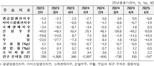 Åë°èûÀÌ 13ÀÏ ¹ßÇ¥ÇÑ ‘2025³â 1ºÐ±â Áö¿ª°æÁ¦µ¿Çâ’¿¡ µû¸£¸é Àü³²ÀÇ ±¤°ø¾÷ »ý»êÀº Àü³â °°Àº ºÐ±âº¸´Ù 0.9% °¨¼ÒÇß´Ù. ±âŸ ¿î¼ÛÀåºñ(47.6%), Àü±â·°¡½º¾÷(14.7%) µîÀÌ ´Ã¾úÀ¸³ª, ±Ý¼Ó(-7.9%), ÄÚÅ©½º·¿¬Åº·¼®À¯Á¤Á¦Ç°(-8.8%) µîÀÌ ÁÙ¾ú´Ù.