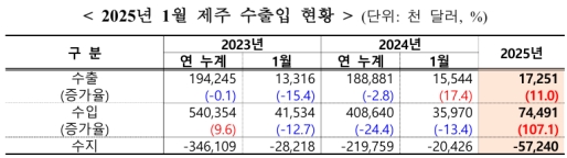 Á¦ÁÖ°¡ ¿ÃÇØ 1¿ù ¼öÃâ Áõ°¡À² Àü±¹ 1À§¸¦ ±â·ÏÇßÁö¸¸, ¼öÀÔ ±ÞÁõÀ¸·Î ¹«¿ª¼öÁö´Â Å« ÆøÀÇ ÀûÀÚ¸¦ ³ªÅ¸³Â´Ù.