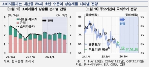 ½ÇÁ¦·Î ¼ÒºñÀÚ¹°°¡ »ó½Â·üÀº 9¿ù 2.1%¿¡¼­ 10¿ù°ú 11¿ù 2.4%·Î ³ô¾ÆÁö¸ç ±âÁ¸ Àü¸ÁÄ¡¸¦ ¿ôµ¹¾Ò´Ù. Çѱ¹ÀºÇàÀº 10~11¿ù ¹°°¡ »ó½Â ¿äÀÎ °¡¿îµ¥ ´Þ·¯-¿ø ȯÀ² »ó½ÂÀÇ ±â¿©µµ¸¦ 0.1%Æ÷ÀÎÆ®(p), ±â»ó ¾ÇÈ­ µî ±âŸ ¿äÀÎÀ» 0.2%p·Î ÃßÁ¤Çß´Ù.