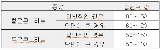 ÄÜÅ©¸®Æ® Ç¥Áؽù漭 Áß ÀÏ¹Ý ÄÜÅ©¸®Æ®ÀÎ KCS 14 20 10ÀÇ 2.2.7(½½·³ÇÁ ¹× ½½·³ÇÁ Ç÷Î)¿¡´Â Ç¥ 1°ú °°ÀÌ Ã¶±Ù ÄÜÅ©¸®Æ®ÀÇ ÀϹÝÀûÀÎ °æ¿ì ½½·³ÇÁ °ªÀº 80 ~ 150 mm·Î µÇ¾î ÀÖ´Ù. µû¶ó¼­, ÀϹÝÀûÀÎ ¾ÆÆÄÆ® °Ç¼³°ø»çÀÎ °æ¿ì´Â ´ëºÎºÐ ½½·³ÇÁ °ªÀ» 80 ~ 150 mm Áß¿¡¼­ °¡±ÞÀû Å©°Ô Àâ¾Æ 150 mm·Î ¼³°èÇÏ´Â °ÍÀÌ ÀϹÝÀûÀÌ´Ù.(ÀϺ»ÀÇ °æ¿ì´Â öÀúÈ÷ 120 mmÀÓ)