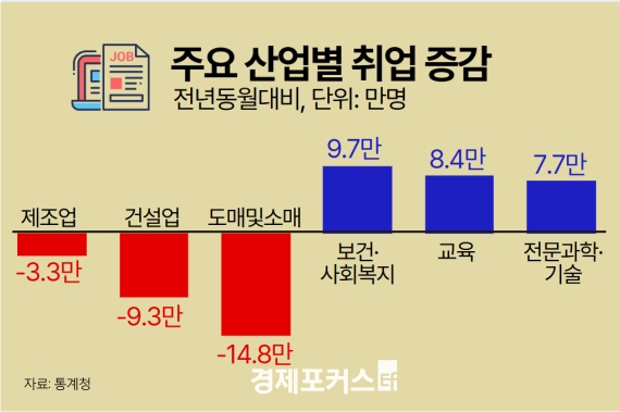 ¹Ý¸é º¸°Ç·»çȸº¹Áö¼ºñ½º¾÷(9¸¸7000¸í), ±³À°¼ºñ½º¾÷(8¸¸4000¸í), Àü¹®°úÇз±â¼ú¼ºñ½º¾÷(7¸¸7000¸í) µî¿¡¼´Â Ãë¾÷ÀÚ ¼ö°¡ ´Ã¾ú´Ù.