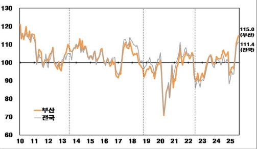 26ÀÏ Çѱ¹ÀºÇà ºÎ»êº»ºÎ°¡ ¹ßÇ¥ÇÑ '8¿ù ¼ÒºñÀÚµ¿ÇâÁ¶»ç'¿¡ µû¸£¸é ÀÌ´Þ ºÎ»êÁö¿ª ¼ÒºñÀڽɸ®Áö¼ö(CCSI)´Â 115.0À¸·Î Àü¿ù ´ëºñ 1.7Æ÷ÀÎÆ®(p) »ó½ÂÇß´Ù. ºÎ»ê ¼ÒºñÀڽɸ®Áö¼ö´Â Áö³ 4¿ù 96.5·Î ±âÁØÄ¡¸¦ ¹Øµ¹¾ÒÀ¸³ª, 5¿ù 103.4, 6¿ù 110.5, 7¿ù 113.3 µîÀ¸·Î ²ÙÁØÈ÷ °³¼±µÇ¸ç 4°³¿ù ¿¬¼Ó ¿À¸§¼¼¸¦ À̾°í ÀÖ´Ù. ÃÖ±Ù 4°³¿ù ¿¬¼Ó °³¼±µÈ Ãß¼¼´Â ¼ÒºñÀÚµéÀÌ ´À³¢´Â °æÁ¦ »óȲÀÌ Á¡Â÷ ³ª¾ÆÁö°í ÀÖÀ½À» º¸¿©ÁØ´Ù.