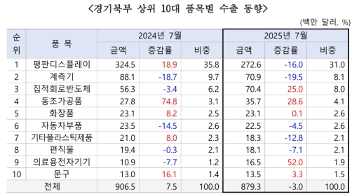 °æ±âºÏºÎÀÇ 7¿ù ¼öÃâÀº °æ±âµµ Àüü ¼öÃâ(154¾ï200¸¸ ´Þ·¯, 12.1%)ÀÇ 5.7% ¼öÁØ¿¡ ±×ÃÆ´Ù. °æ±âµµ Àüü°¡ µÎ ÀÚ¸´¼ö ¼ºÀå¼¼¸¦ ±â·ÏÇÑ °Í°ú ´Þ¸® °æ±âºÏºÎ´Â ÆòÆÇµð½ºÇ÷¹ÀÌ ÀÇÁ¸µµ°¡ ³ô¾Æ »ó´ëÀûÀ¸·Î ºÎÁøÇÑ È帧À» À̾´Ù.
