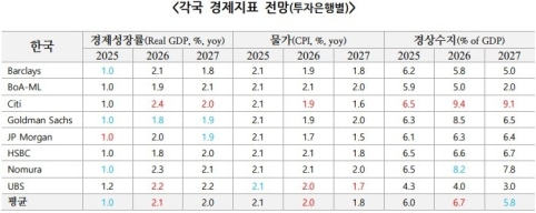 ±â°üº°·Î´Â ¾¾Æ¼°¡ ¼ºÀå·ü Àü¸ÁÄ¡¸¦ 2.2%¿¡¼ 2.4%·Î, UBS°¡ 2.0%¿¡¼ 2.2%·Î °¢°¢ »óÇâ Á¶Á¤Çß´Ù. ¹Ý¸é °ñµå¸¸»è½º´Â 1.9%¿¡¼ 1.8%·Î Àü¸ÁÄ¡¸¦ ³·Ãè´Ù. ¹ÙŬ¸®(2.1%), ¹ðÅ©¿Àºê¾Æ¸Þ¸®Ä«(1.9%), JP¸ð°Ç(2.0%), HSBC(1.8%), ³ë¹«¶ó(2.3%)´Â ±âÁ¸ Àü¸ÁÀ» À¯ÁöÇß´Ù.