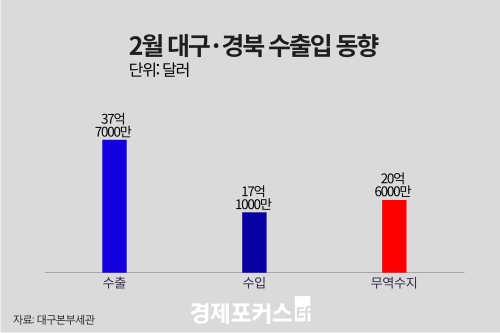 Áö³ 2¿ù ´ë±¸·°æºÏÀÇ ¼öÃâÀÌ Àü³â µ¿¿ù ´ëºñ ¼ÒÆø °¨¼ÒÇÑ °¡¿îµ¥, °æºÏÀº Áõ°¡¼¼¸¦ º¸ÀÎ ¹Ý¸é ´ë±¸´Â °¨¼Ò¼¼¸¦ À̾ °ÍÀ¸·Î ³ªÅ¸³µ´Ù.