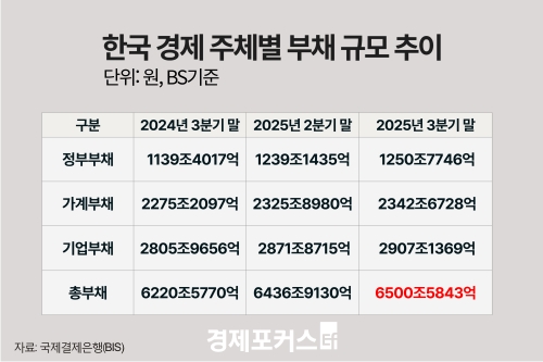 GDP ´ëºñ ÃѺÎä ºñÀ²Àº Áö³ÇØ 3ºÐ±â ¸» 248.0%·Î ³ªÅ¸³µ´Ù. ÀÌ´Â Áö³ÇØ 2ºÐ±â ¸»(248.3%)º¸´Ù 0.3%p ³·Áö¸¸, 1³â Àü(246.5%)°ú ºñ±³Çϸé 1.5%p »ó½ÂÇÑ ¼öÁØÀÌ´Ù.