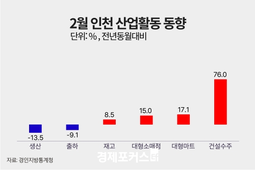 31ÀÏ °æÀÎÁö¹æÅë°èûÀÌ ¹ßÇ¥ÇÑ ‘¼öµµ±Ç ½Ãµµº° »ê¾÷Ȱµ¿µ¿Çâ’¿¡ µû¸£¸é 2¿ù ÀÎõÁö¿ª ±¤°ø¾÷ »ý»êÁö¼ö´Â 111.8(2020=100.0)·Î Àü³â µ¿¿ù ´ëºñ 13.5% °¨¼ÒÇß´Ù.