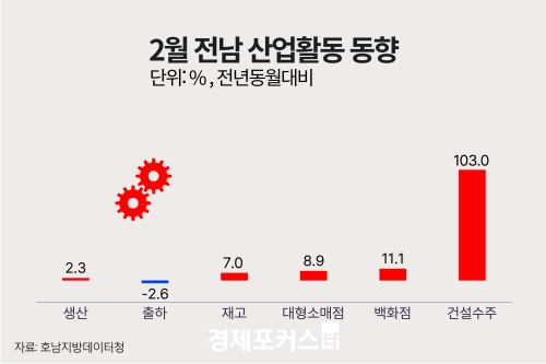 Áö³ 2¿ù ±¤ÁÖ·Àü³²Áö¿ª »ê¾÷Ȱµ¿Àº »ý»ê È帧ÀÌ ¾ù°¥¸° °¡¿îµ¥ ¼Òºñ¿Í °Ç¼³¼öÁÖ´Â ¸ðµÎ Áõ°¡ÇÑ °ÍÀ¸·Î ³ªÅ¸³µ´Ù.