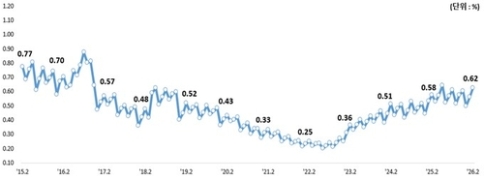 2¿ù ¸» ½Å±Ô¿¬Ã¼À²(Á÷Àü 1¿ù ¸» ´ëÃâÀÜ¾× ´ëºñ 2¿ù Áß ½Å±Ô¿¬Ã¼ ¹ß»ý¾× ºñÀ²)Àº 0.12%·Î Àü¿ù(0.11%)º¸´Ù 0.01%p »ó½ÂÇß´Ù.