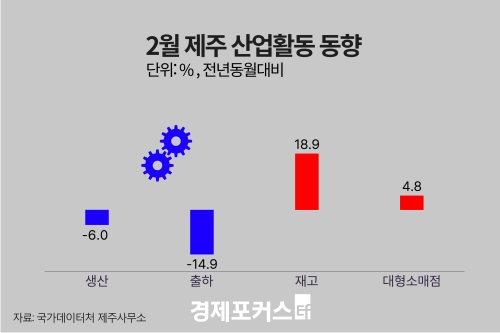 Áö³ 2¿ù Á¦ÁÖÁö¿ª »ê¾÷Ȱµ¿ÀÌ »ý»ê°ú ÃâÇÏ °¨¼Ò, Àç°í Áõ°¡·Î Àü¹ÝÀûÀÎ À§Ãà È帧À» º¸¿´´Ù. ¹Ý¸é ´ëÇü¼Ò¸ÅÁ¡ ÆÇ¸Å´Â Áõ°¡·Î ÀüȯµÆ´Ù.