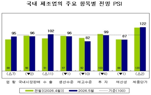 »ê¾÷¿¬±¸¿øÀÌ 26ÀÏ ¹ßÇ¥ÇÑ ‘»ê¾÷°æ±â Àü¹®°¡ ¼º£ÀÌ Áö¼ö(PSI)’¿¡ µû¸£¸é 4¿ù Á¦Á¶¾÷ ¾÷Ȳ ÇöȲ PSI´Â 95·Î Àü¿ù(97) ´ëºñ 2Æ÷ÀÎÆ®(p) Ç϶ôÇϸç 2°³¿ù ¿¬¼Ó ±âÁØÄ¡ 100À» ÇÏȸÇß´Ù.