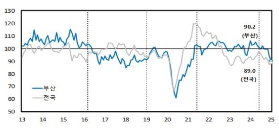 3ÀÏ Çѱ¹ÀºÇà ºÎ»êº»ºÎ°¡ ¹ßÇ¥ÇÑ 1¿ù ºÎ»êÁö¿ª ±â¾÷°æ±âÁ¶»ç °á°ú¿¡ µû¸£¸é, ÀÌ´Þ Á¦Á¶¾÷ ±â¾÷½É¸®Áö¼ö(CBSI)´Â 90.2·Î, Áö³ ´Þ 94.5º¸´Ù 4.3 Æ÷ÀÎÆ® Ç϶ôÇÑ °ÍÀ¸·Î ³ªÅ¸³µ´Ù. ºÎ»êÁö¿ª Á¦Á¶¾÷ÀÇ CBSI´Â Áö³ÇØ 9¿ùºÎÅÍ 3°³¿ù ¿¬¼Ó 99 Æ÷ÀÎÆ®´ë¸¦ À¯ÁöÇÏ´Ù°¡ Áö³ÇØ 12¿ù 94.5·Î ±Þ¶ôÇß´Ù.