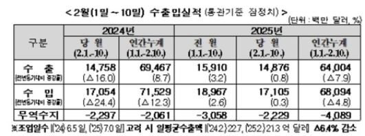 2¿ù 1~10ÀÏ ¹«¿ª¼öÁö´Â 22¾ï2900¸¸ ´Þ·¯ ÀûÀÚ¸¦ ±â·ÏÇß´Ù. ÀÌ´Â ¿ùÃÊ ¼öÀÔ ÁýÁß Çö»ó¿¡ µû¸¥ ÀϽÃÀû ÀûÀÚ·Î ºÐ¼®µÇÁö¸¸, ¹Ì±¹Çà ¼öÃâ ºÎÁø°ú ¹Ì±¹¹ß ¼öÀÔ Áõ°¡°¡ Áö¼ÓµÉ °æ¿ì ¹«¿ª¼öÁö °³¼±ÀÌ ½±Áö ¾ÊÀ» Àü¸ÁÀÌ´Ù.