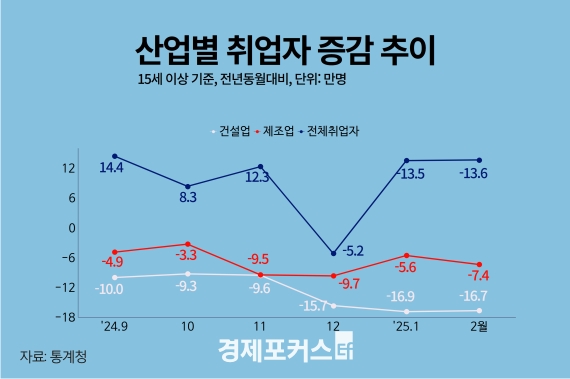 ±×·¯³ª Á¦Á¶¾÷ Ãë¾÷ÀÚ´Â 7¸¸4000¸í ÁÙ¾î 8°³¿ù ¿¬¼Ó °¨¼Ò¼¼¸¦ ±â·ÏÇß°í, °Ç¼³¾÷Àº 16¸¸7000¸íÀÌ ÁÙ¾î 10°³¿ù ¿¬¼Ó ¸¶À̳ʽº¸¦ ³ªÅ¸³Â´Ù. ¹Ý¸é, º¸°Ç·»çȸº¹Áö¼­ºñ½º¾÷(19¸¸2000¸í), Àü¹®·°úÇз±â¼ú¼­ºñ½º¾÷(8¸¸¸í), Á¤º¸Åë½Å¾÷(6¸¸5000¸í) µî¿¡¼­´Â Ãë¾÷ÀÚ°¡ ´Ã¾ú´Ù.