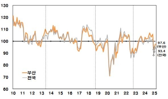 25ÀÏ Çѱ¹ÀºÇà ºÎ»êº»ºÎ°¡ ¹ßÇ¥ÇÑ '2025³â 3¿ù ºÎ»êÁö¿ª ¼ÒºñÀÚµ¿ÇâÁ¶»ç'¿¡ µû¸£¸é, ÀÌ´Þ ºÎ»ê ¼ÒºñÀڽɸ®Áö¼ö(CCSI)´Â 97.6À¸·Î Àü¿ù ´ëºñ 0.3Æ÷ÀÎÆ®(p) »ó½ÂÇß´Ù. Áö³ÇØ 12¿ù 93.0¿¡¼ ¿ÃÇØ 1¿ù 94.8, 2¿ù 97.3, 3¿ù 97.6À¸·Î Á¡ÁøÀûÀΠȸº¹¼¼¸¦ º¸À̰í ÀÖÁö¸¸, ¿©ÀüÈ÷ ±âÁؼ±(100)À» ³ÑÁö ¸øÇØ ¼Òºñ ½É¸®°¡ ºñ°üÀûÀÎ »óÅÂÀÓÀ» ½Ã»çÇÑ´Ù.