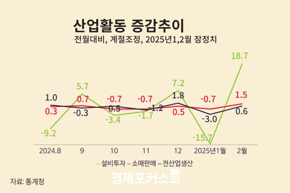Áö³ 2¿ù »ê¾÷»ý»ê, ¼Òºñ, ÅõÀÚ µî 3´ë °æÁ¦ÁöÇ¥°¡ ¸ðµÎ Áõ°¡Çϸç 1¿ùÀÇ Æ®¸®Çà °¨¼Ò¿¡¼ ¹ÝµîÇß´Ù. ÇÏÁö¸¸ °æ±â È帧ÀÌ Áö¼ÓÀûÀ¸·Î Ãâ··ÀÌ¸ç °æÁ¦ ºÒÈ®½Ç¼ºÀº ¿©ÀüÈ÷ Å« »óȲÀÌ´Ù.
