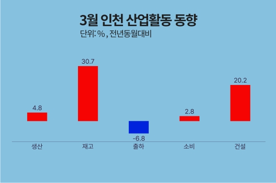 30ÀÏ °æÀÎÁö¹æÅë°èûÀÌ ¹ßÇ¥ÇÑ ‘2025³â 3¿ù ¼öµµ±Ç »ê¾÷Ȱµ¿µ¿Çâ’¿¡ µû¸£¸é, ÀÎõÁö¿ªÀÇ 3¿ù ±¤°ø¾÷ »ý»êÁö¼ö´Â 151.4(2020³â=100)·Î Àü³â °°Àº ´Þ ´ëºñ 4.8% Áõ°¡Çß´Ù. ÀǾàǰ(59.0%), ÀüÀÚ·Åë½Å(20.1%), ±Ý¼Ó°¡°ø(9.4%) µîÀÌ »ý»ê Áõ°¡¸¦ °ßÀÎÇÑ ¹Ý¸é, ±â°èÀåºñ(-32.1%), ÀÇ·áÁ¤¹Ð±¤ÇÐ(-53.6%) µîÀÇ ºÎÁøÀº ¶Ñ·ÇÇß´Ù.