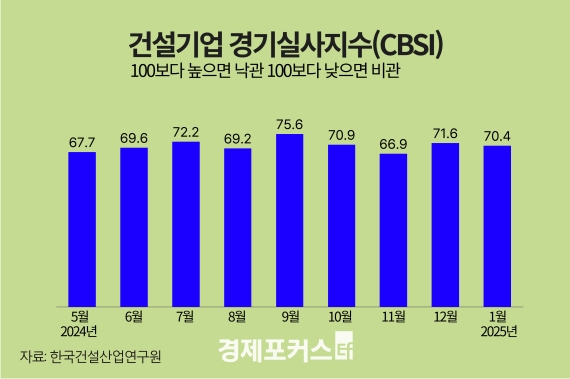 Çѱ¹°Ç¼³»ê¾÷¿¬±¸¿ø(¿øÀå ÀÌÃæÀç)Àº 10ÀÏ ¹ßÇ¥ÇÑ ‘2025³â 1¿ù CBSI’¿¡¼ Áö¼ö°¡ Àü¿ùº¸´Ù 1.2Æ÷ÀÎÆ®(p) ¶³¾îÁø 70.4¸¦ ±â·ÏÇß´Ù°í ¹àÇû´Ù. Áö³ÇØ 12¿ù ¿¬¸» ¼öÁÖ Áõ°¡·Î 4.7p »ó½ÂÇßÁö¸¸, ±× È¿°ú°¡ »ç¶óÁö¸ç ¿ÃÇØ µé¾î ´Ù½Ã Ç϶ô¼¼·Î ÀüȯµÈ °ÍÀÌ´Ù.