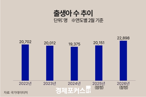 올해 2월 출생아 수가 2만3000명에 육박하며 같은 달 기준 7년 만에 최대치를 기록했다. 증가율은 관련 통계 작성 이후 2월 기준 최고 수준이다.