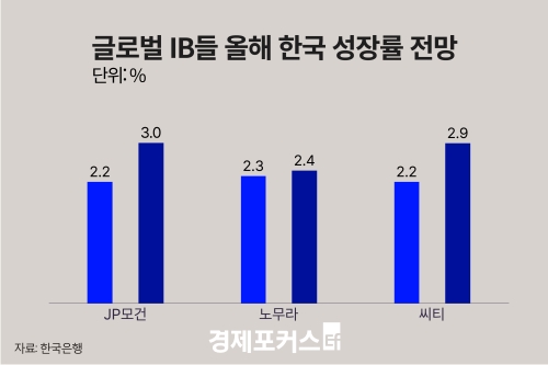 주요 IB들은 이 같은 흐름을 반영해 전망치를 일제히 높였다. JP모간은 기존 2.2%에서 3.0%로 대폭 상향했고, 씨티는 2.2%에서 2.9%로 조정했다. 노무라는 2.3%에서 2.4%로 소폭 올리며 상대적으로 신중한 입장을 유지했다.